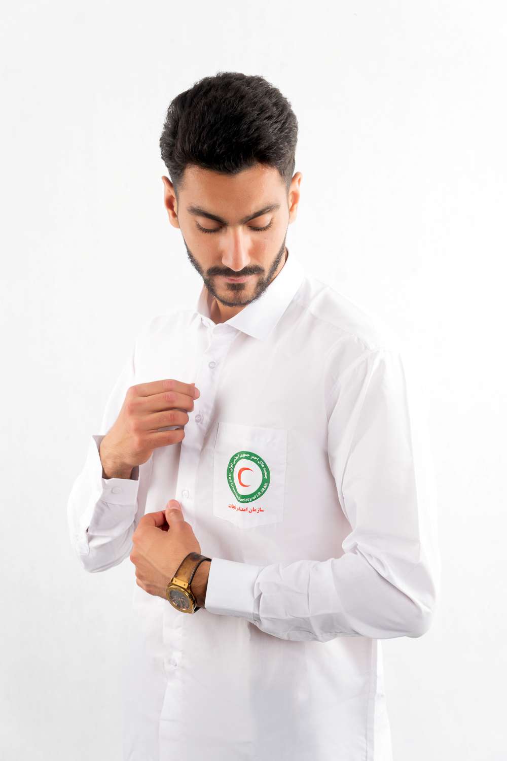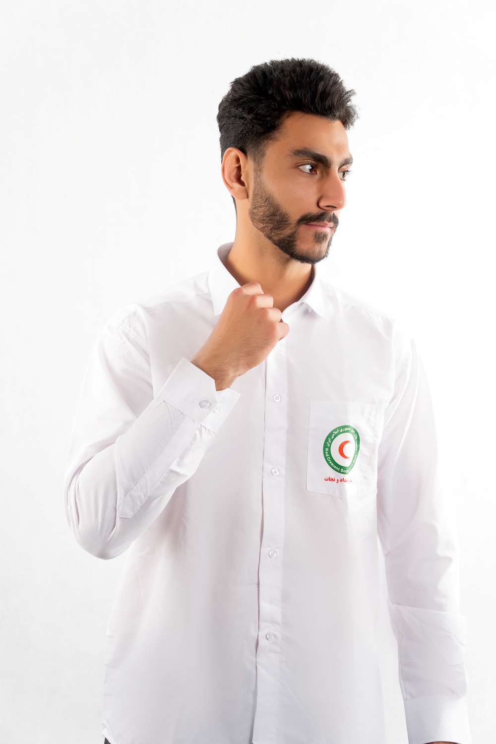 پیراهن رسمی هلال احمر، مناسب برای نیروهای امدادی و اداری. طراحی استاندارد، پارچه با کیفیت، دوخت تمیز و بادوام. قابل سفارش در سایزهای مختلف.