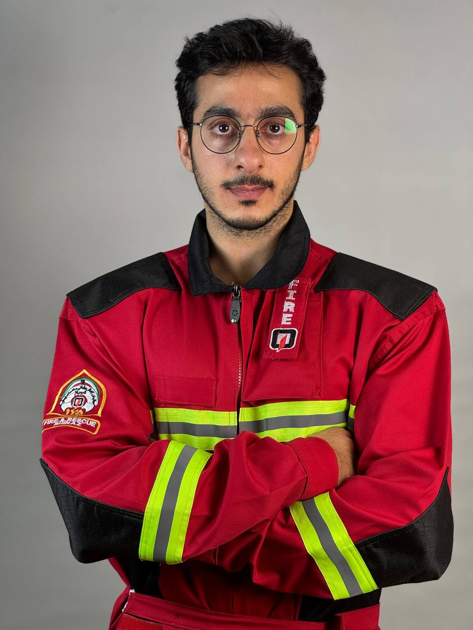 لباس سرهمی آتشنشانی کتان با طراحی استاندارد، مقاوم در برابر حرارت و شعله، مناسب عملیات اطفای حریق و امداد و نجات.